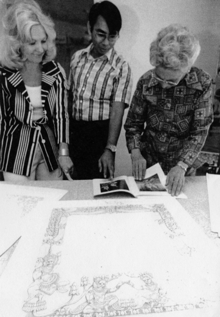 Rangsith Lang (a professional Laotian artist who worked for his government in his home country and created the intricate designs used in his nation’s postage stamps). See Mr. Lang’s exquisite work as page borders in ENCIRCLED KINGDOM: Legends and Folktales of Laos.