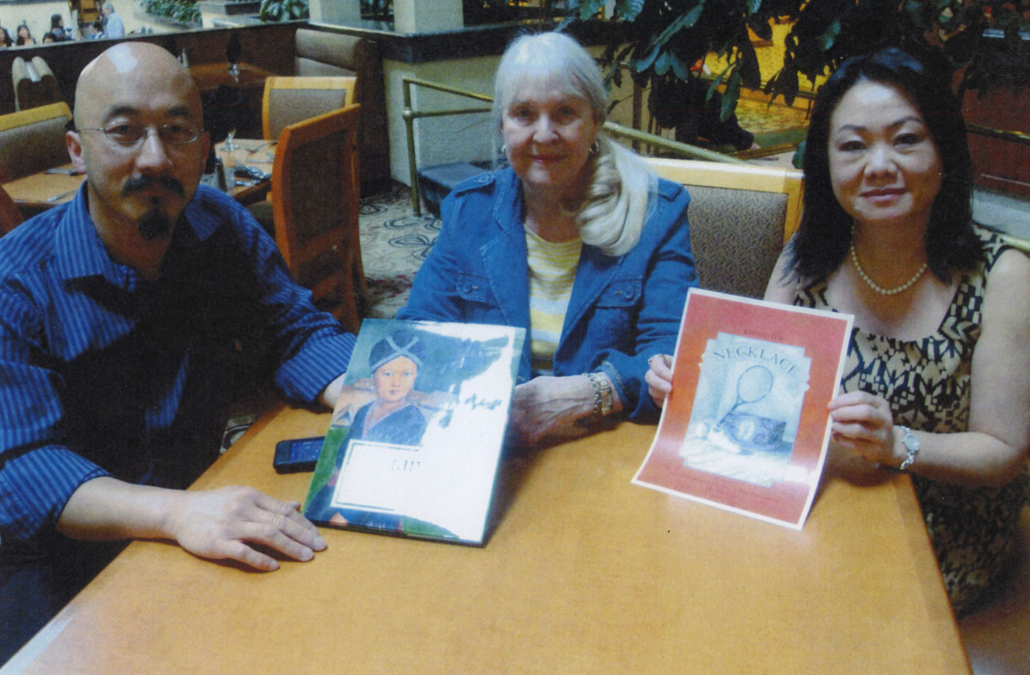 Ma Ly (a professional Hmong artist specializing in portraiture) worked closely with Dr. Coburn and with Maikou Xiong to further the telling of the little known history behind the unique piece of jewelry in ENCHANTED NECKLACE: The Wisdom of the Hmong Speaks to us Today. Mai Yang Thor and Pa Vang (Hmong university students) served as models for the story’s main character.